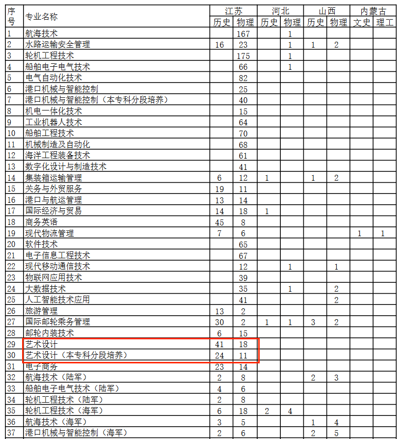 2025江苏海事职业技术学院艺术类招生计划-各专业招生人数是多少