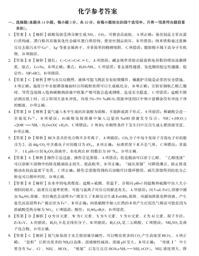 娄底名校联考2025届高三11月信息卷月考一化学试卷及参考答案