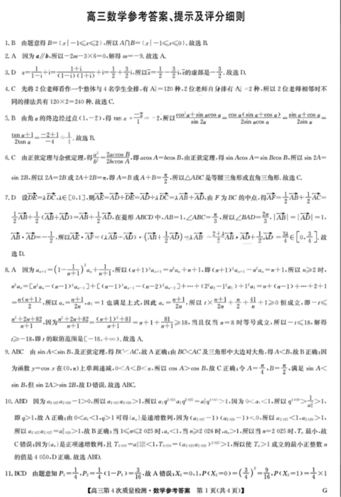 九师联盟2026届高三12月联考教学质量监测数学试题及答案解析