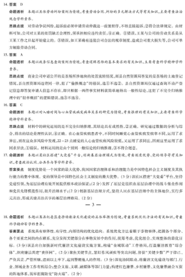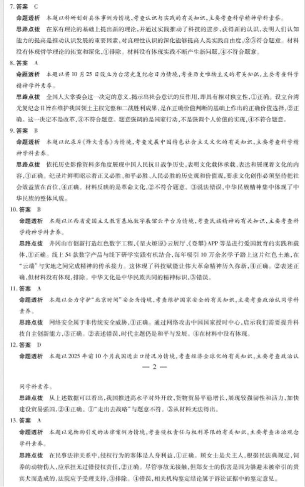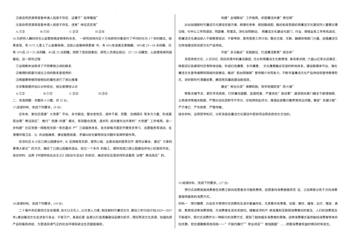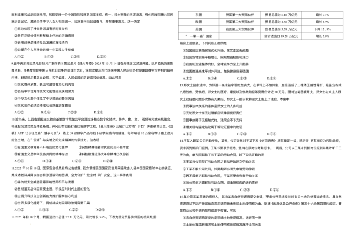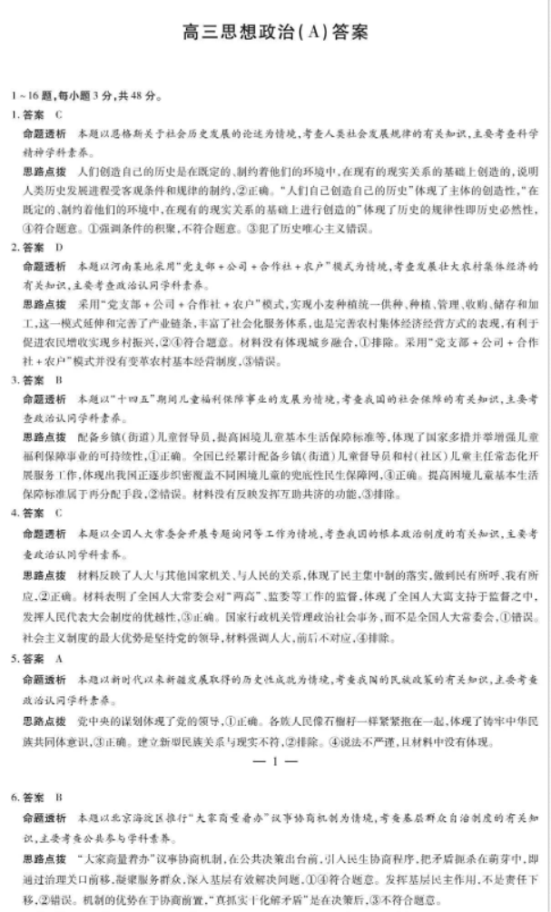 天一大联考2026届高三四省联考政治试题及答案汇总